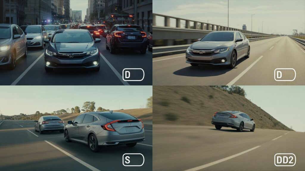 2026 CVT Civics automatically simulate low gears on hills, but manual D2/D3 still gives more stability on extreme slopes. In older Civics, this is manual control. In newer CVT models, similar behavior is handled automatically, but manual control still helps in tough conditions.